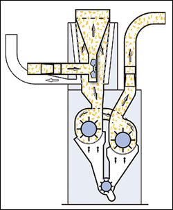 In comparison with the current benchmark, the CL-X saves up to 30 % energy (see chart 1). In addition to the optimised flow, an integrated air separator contributes to reducing the transport air by ensuring that only excess air has to be removed, rather than all of the air. Less exhaust air means less energy consumption.